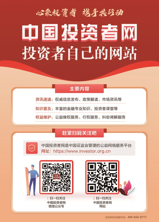 若是各人想相识最权威投资知识、怎样维护投资权益、证监会最新资讯等,接待各人起劲关注“中国投资者网”公众号和网站。