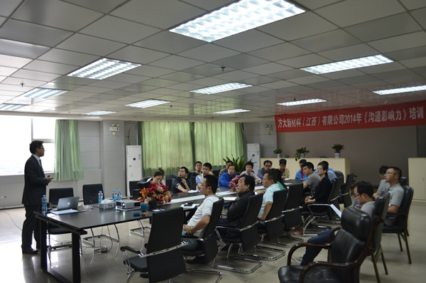 5月17日至18日,为提高中高层治理职员的相同技巧及下层主干的职业化素质,江西新材在公司办公大楼二楼聚会室,划分组织开展了主题为《相同影响力》及《职业化塑造》的培训课程,由英国威尔士大学MBA的吕铮先生举行授课。