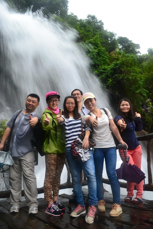 运动当天一早就最先下起了大雨 ,各人冒雨在公司荟萃 ,乘大巴向白水寨出发 ,这场大雨也意味着此次运动将是一次特别的生日履历。各人一起欢声笑语抵达了白水寨景区。白水寨果真名不虚传 ,瀑布从山顶喷薄而落 ,不禁让人想到李白 “飞流直下三千尺 ,疑是银河落九天”的名句 ,景区内可谓“五步一小景 ,十步一大景” ,种种景致让各人目不暇接 ,当各人走在素有“天南第一梯”的9999级的爬山步径上 ,可以在木阶之间清晰看到脚下游淌的湍急水流 ,刺激惊险。