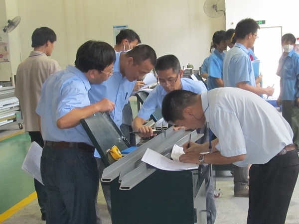 在本次“质量月”运动中掀起了学知识、练手艺的热潮,增强了员工的质量看法和意识。自动化公司工厂、型材加工厂、配件加工厂:对操作工人举行言传身教方法的操作培训,要求工人增强自检,严酷控制产品质量,对操作工人举行了量具使用的培训;增强了员工的看图识图培训。组装厂:坚持按期聚会,提高员工的质量意识,天天生产竣事后,质检员对当天的生产和质量情形举行小结,并按期在车间以予公示;使车间的制造质量整体上获得了改善和提高。