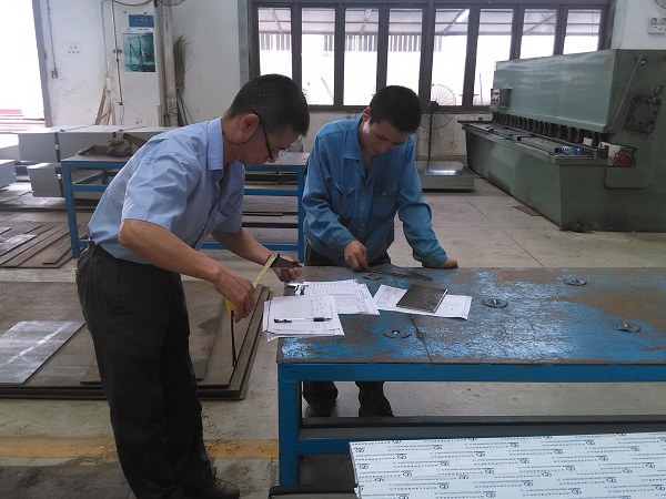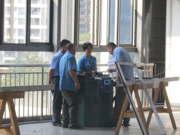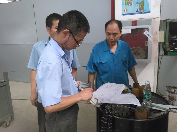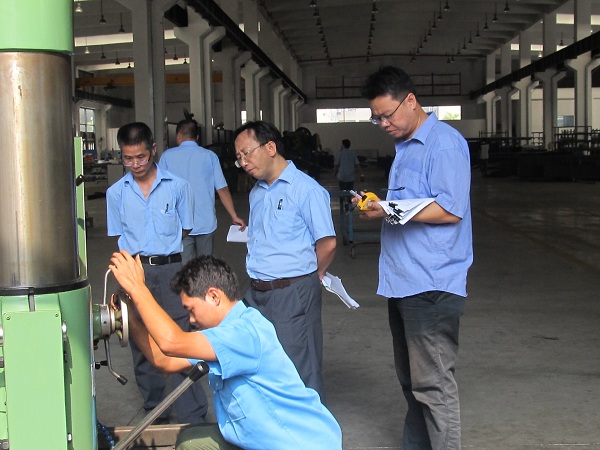 评审组成员和现场质检职员正在对产品的数据举行认真检测与填写