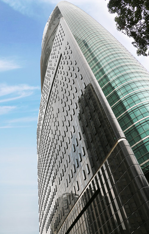 深圳文广博厦位于深圳市福田中心区新洲路与莲花路交汇处,修建面积104735平方米,修建高度208米,是中国国际文化工业展览会的主要配套设施,也是深圳市“十二五”文化工业妄想重点项目,由深圳报业集团和深圳新天下集团协力打造。项目由美国DiMarzio | Kato修建设计,接纳奇异的流线型外立面,呈立体椭圆形,外墙颇具个性气概的绿色和灰色中空LOW-E玻璃,玄妙的反光和绿树、蓝天、白云等自然景观在修建物上的倒影转变,使整个修建变得富厚有趣。