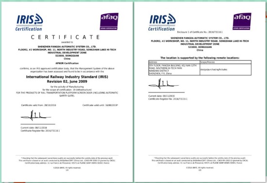 深圳市AG旗舰厅自动化系统有限公司作为全球最大的轨道交通屏障门系统供应商,导入IRIS谋划治理系统是公司与天下先进治理要领接轨的须要行动。IRIS治理系统认证证书的获得,是自力的第三方机构对AG旗舰厅自动化公司的治理系统切合国际铁路行业统一规范标准的认可。通过IRIS谋划治理系统认证,意味着AG旗舰厅自动化公司的治理系统接轨天下先进治理要领,在ISO9000基础上进一步提升企业的整体治理水平。在取得IRIS治理系统认证证书后,AG旗舰厅自动化公司的相关认证信息将由IRIS治理中心录入IRIS门户网站认证信息库举行统一治理,同时可供全球铁路行业客户举行检索、浏览,这为AG旗舰厅自动化公司拓展市场领域、获取更多的国际订单提供了强有力的包管。