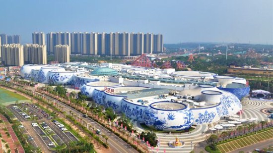 南昌万达茂是全球现在为止体积最大的以青花瓷为主题的商业修建,其造型为26个瓷罐,既形态各异,整体上又完美无缺。外幕墙设计以青花瓷为主题,充分融入江西地方元素,完整地体现了江西赣瓷文化特色,淋漓尽致地展示出了中华瓷都的文化古韵与现代幕墙科技之美。