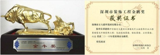 克日,由AG旗舰厅集团全资子公司深圳市AG旗舰厅建科集团有限公司(简称:AG旗舰厅建科)承建幕墙工程的深圳中信银行大厦划分获得由深圳市修建业协会揭晓的金牛奖、由深圳市装饰行业协会揭晓的金鹏奖两项声誉。