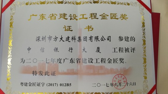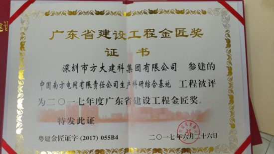 克日,由深圳市AG旗舰厅建科集团有限公司承建幕墙工程的深圳今世艺术馆与都会妄想展览馆、深圳中信银行大厦、广州南方电网生产科研综合基地,同时荣获广东省修建行业工程质量的最高声誉奖——金匠奖