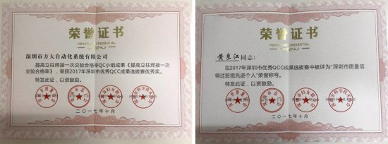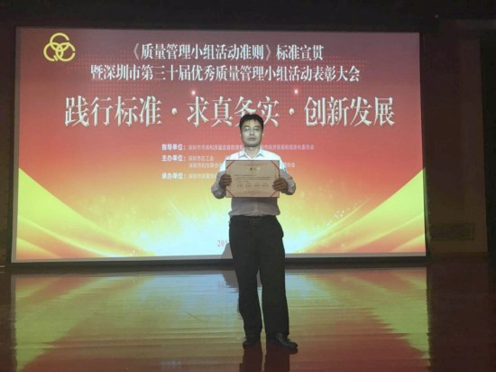 “2017年深圳市优异QCC效果选拔赛优异奖”是由深圳市质量协会、深圳市总工会、深圳市妇女团结会和深圳市科学手艺协会团结审定,旨在表扬在2017年深圳市质量治理小组运动中涌现出的优异企业、QC小组和小我私家。