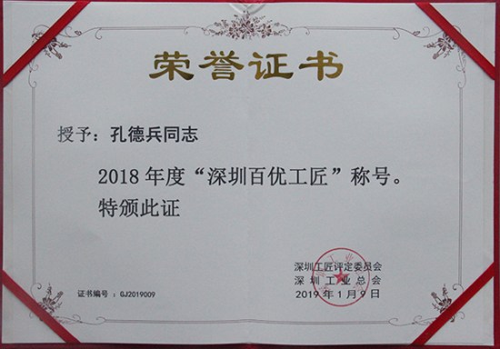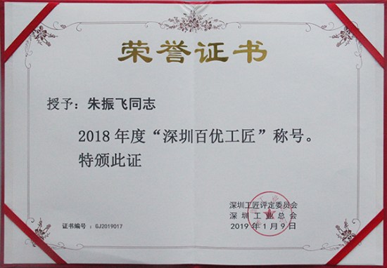 克日,深圳工匠评定委员会、深圳工业总会“深圳百优工匠”评选效果揭晓,AG旗舰厅集团全资子公司AG旗舰厅智创科技有限公司员工欧阳科华、朱振飞、孔德兵获评2018年度“深圳百优工匠”。