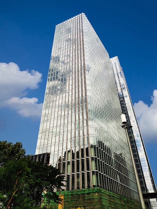 ÉîÛÚ¡¤Íò¿Æ±õº£ÖõشóÏÃλÓÚÉîÛÚÊи£ÌïÇø£¬Ä»Ç½ÀàÐÍÖ÷ÒªÊǾâ³Ý×´µ¥Î»Ê½²£Á§+ʯ²Ä+´©¿×ÂÁ°åĻǽ¡£ÏîÄ¿ËþÂ¥½ÓÄÉLÐͺÍIÐ͵¥Î»°å¿é×é³É£¬Ãæ°å½ÓÄÉ·äÎÑʯ²Ä¡¢Öпռнº²£Á§ºÍ´©¿×ÂÁ°å¡£ÎªÁËÔöǿĻǽϵͳµÄ͸·çÐÔÄÜ£¬ÔÚ´©¿×ÂÁ°åºó²àÉèÖÃÁËÄÚ¿ªµÄÂÁ°å´°¡£¾â³Ý×´µÄĻǽÀàÐͺÍÌØÉ«ÖÊÁϵÄ×éºÏʹ¸ÃÏîÄ¿³ÉΪ±õºÓ´óµÀÉϵÄÒ»µÀö¦Àö¾°ÎͬʱҲ¸øÉè¼ÆÊ©¹¤´øÀ´ÁËÄÑÌ⣬ÏîÄ¿ÍŶÓͨ¹ýÈýάģÄâÈ·±£LÐͰå¿éÓëIÐͰå¿é׼ȷ²å½Ó£¬¶ÔʹÓø߶È157mµÄ·äÎÑʯ²ÄÅþÁ¬¼Æ»®¾ÙÐÐÁËÔöÇ¿²½·¥£¬²¢Ë³Ëìͨ¹ýĻǽר¼ÒרÏîµÄÆÀÉó¡£